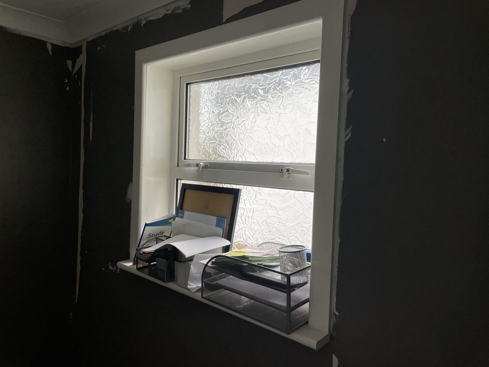 Start by removing the window frame, the interior trim & window board - and the interior & external corner beads.