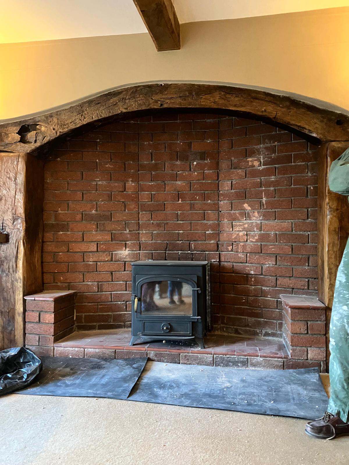 We've got a brick fireplace which was covered with plasterboard. In removing the plasterboard we've ended up with some chisel / scoring marks on the bricks in a few places.