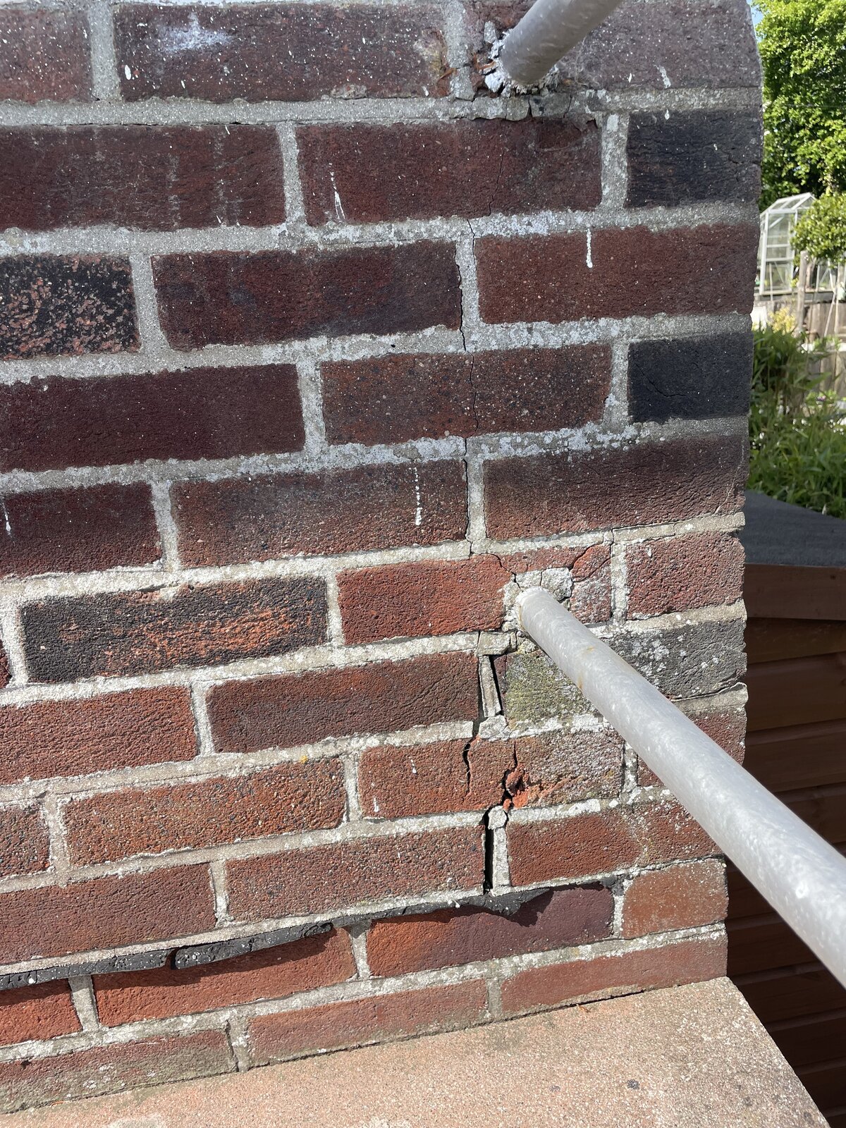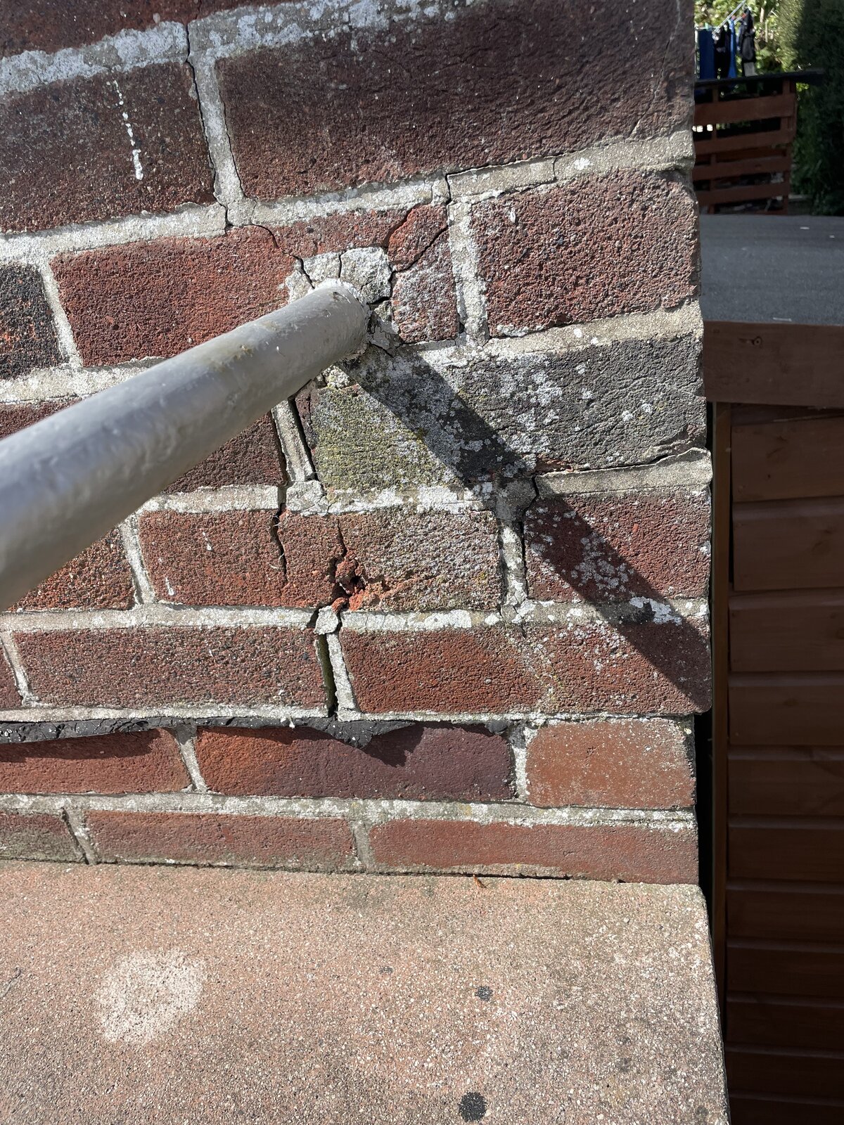 You will see a couple of iron railings were inserted into the front wall. I guess the bit that goes into the wall has rusted and on expanding has caused a bit of damage which I’ve consistently ignored but I can’t really ignore any longer.