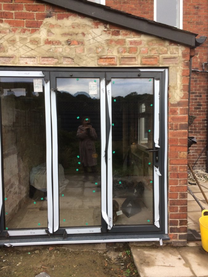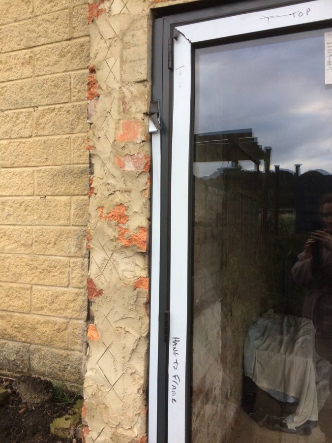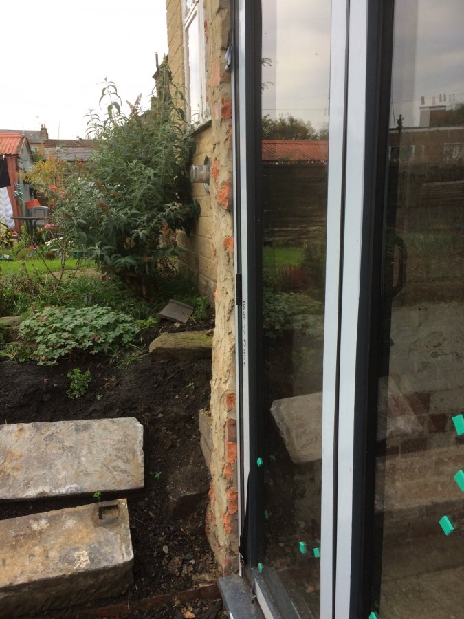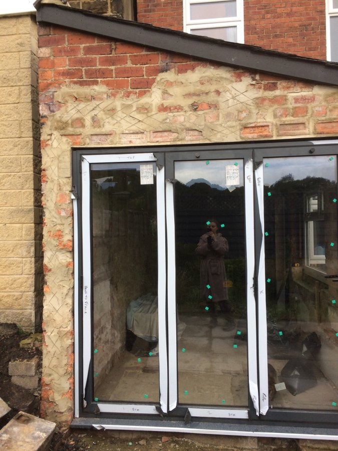 So we had a coal shed knocked down which was tied in to our kitchen wall. Then we've had a bifold door put in. At the time we planned to render the brick, but now we've decided it would look tacky and out of character for the old house. The builders have done a really rough job of the brickwork probably because they were told we would render and because they've rushed the job. Now we're left with an uneven messy bodged up wall, how can we fix it? I just want it to look normal! thanks