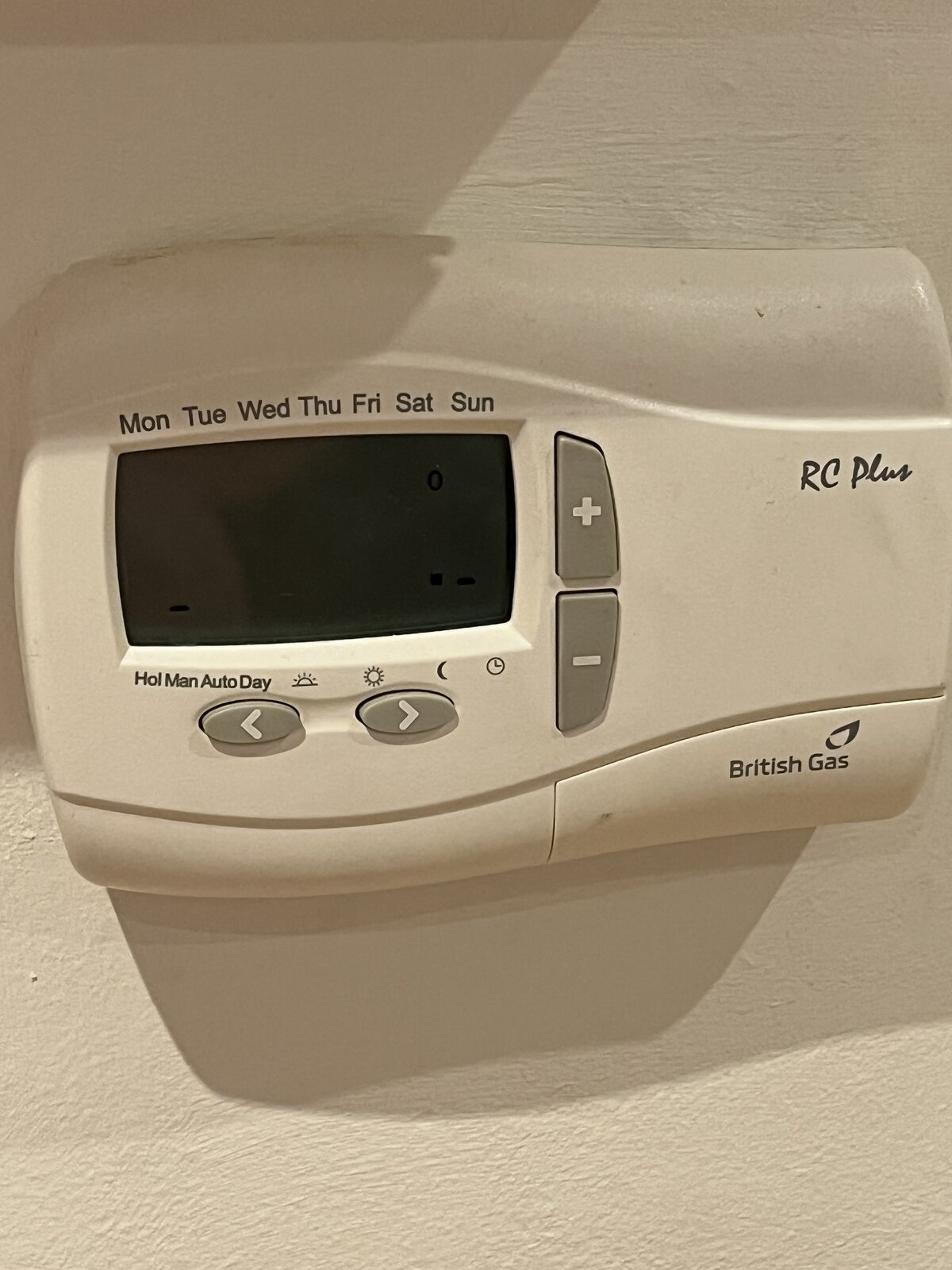 The thermostat is linked to the boiler etc and the only issue seems to be the display on the thermostat doesn’t work. Can see a couple of faded black lines but never been able to use it to set timers etc. I was able to use manual mode and could tell when the temp was above or below 20 due to the lines