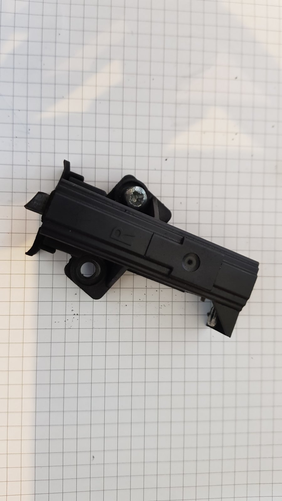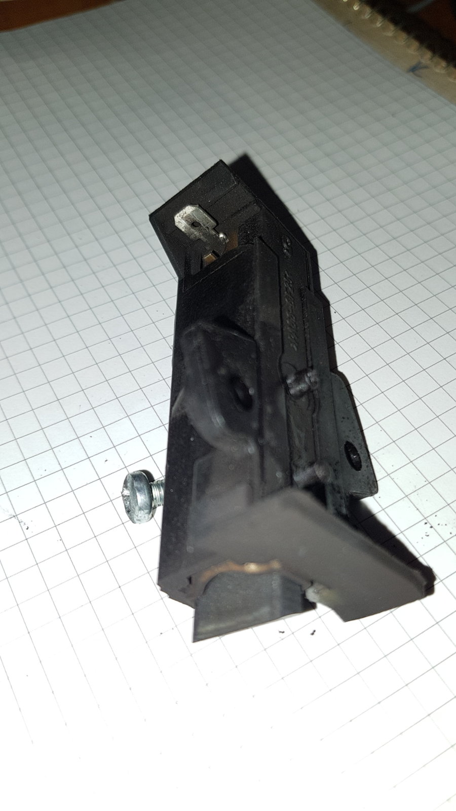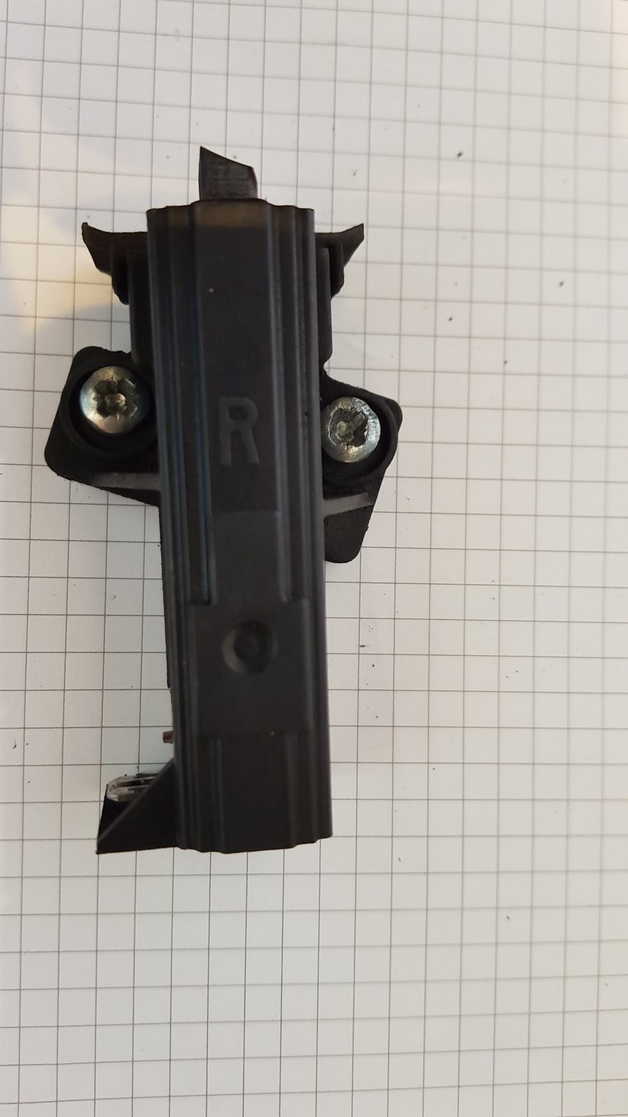 However, in the washing machine there appears to be an older type of brush with an R on the top and a connector coming out of the side instead of the side. (PHOTOS ATTACHED). The plastic guides do not fit into the holes and the screw holes are in a slightly different place.