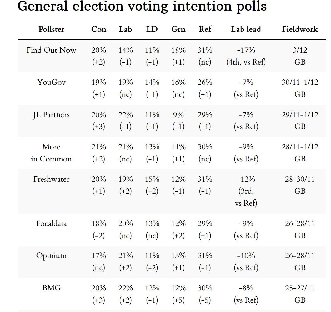 They don't look like a full spectrum of the polls, I suspect they were cherry-picked by the resident commie.latest polls put Reform only round 8% to 10% ahead