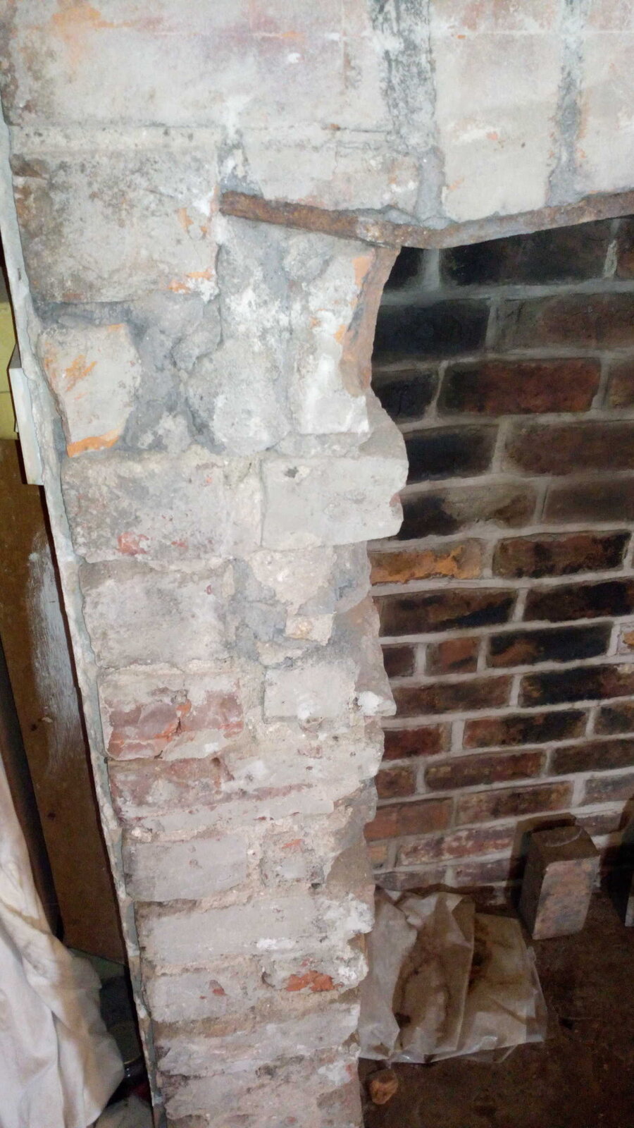 Looking for some advice, I've opened up a builders opening to it's original 1911 spec, due to the many different fireplaces over the years, the lintels installed by gas fitters have chewed up some of the column bricks, left side being the worst.