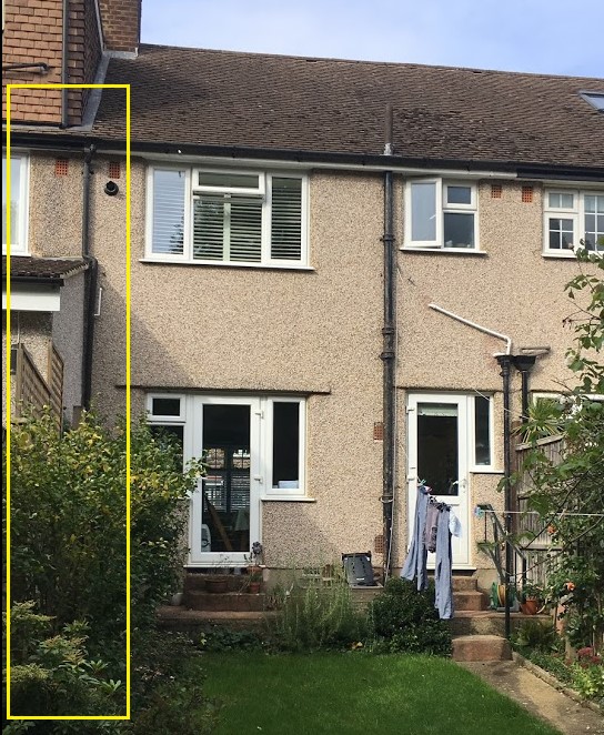 We are planning a single storey rear 3 x 5 m extension to our 1930 terraced house. Having got a few quotes from builders I'm a little confused by the advice on how we build next to our neighbours existing extension. They have the exact shape and size extension we'd like to build so we would essentially copying the structure and extending across the back of our house at the same height and depth. The neighbours extension appears to be built up to the boundary line so they own the wall entirely. See photo attached.
