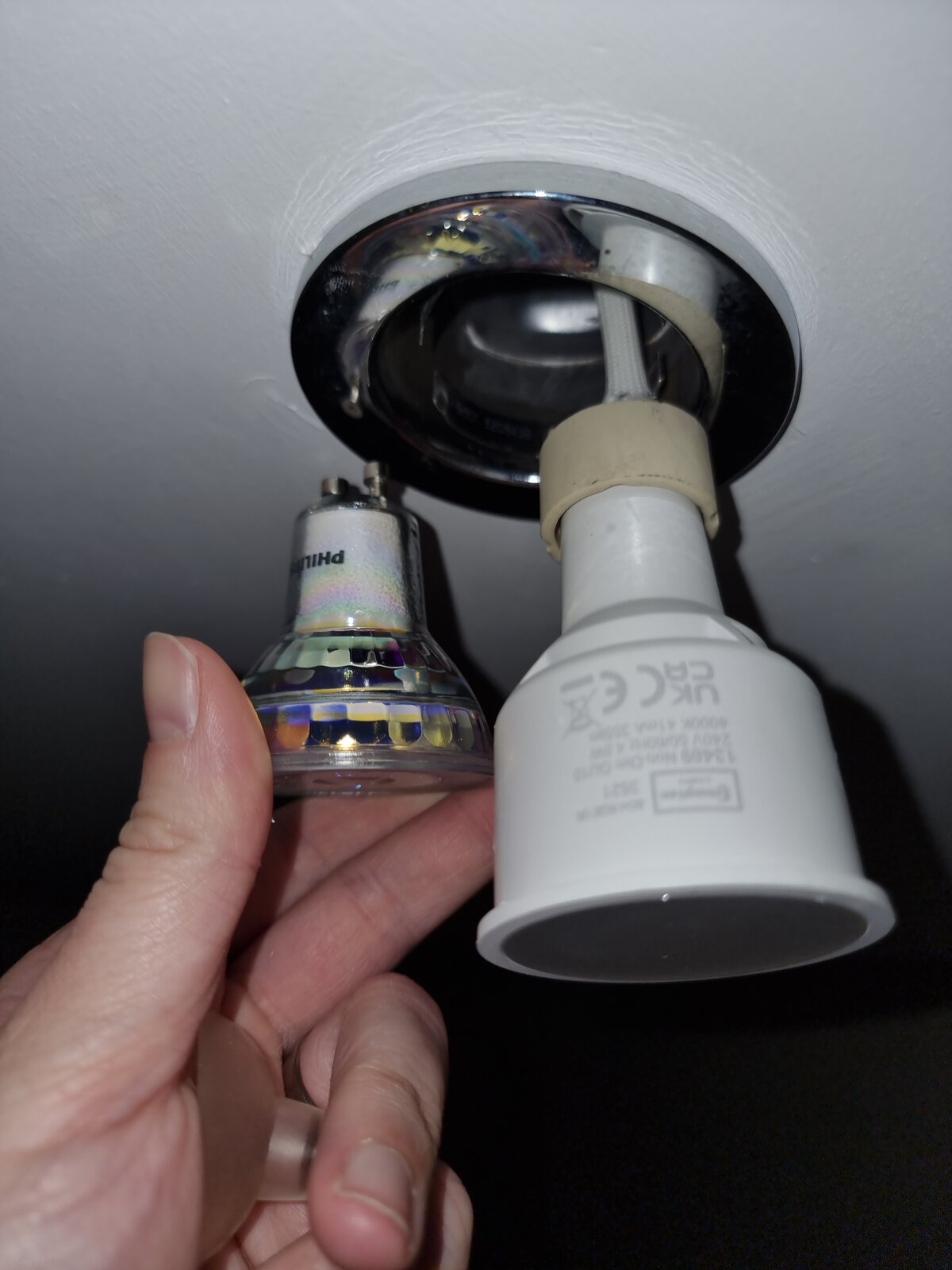 I'm at my wits end with these downlights. I finally cracked how to get the bulbs out (literally brute force pull them down somehow, no twisting here sadly) and went to replace them with some decent bulbs to find that the new bulbs just slip straight out. Am I being a moron and are these downlights designed for a specific bulb type? The socket is obviously GU10 but I can't figure out why a 'standard' GU10 bulb just flops itself back out... very frustrating