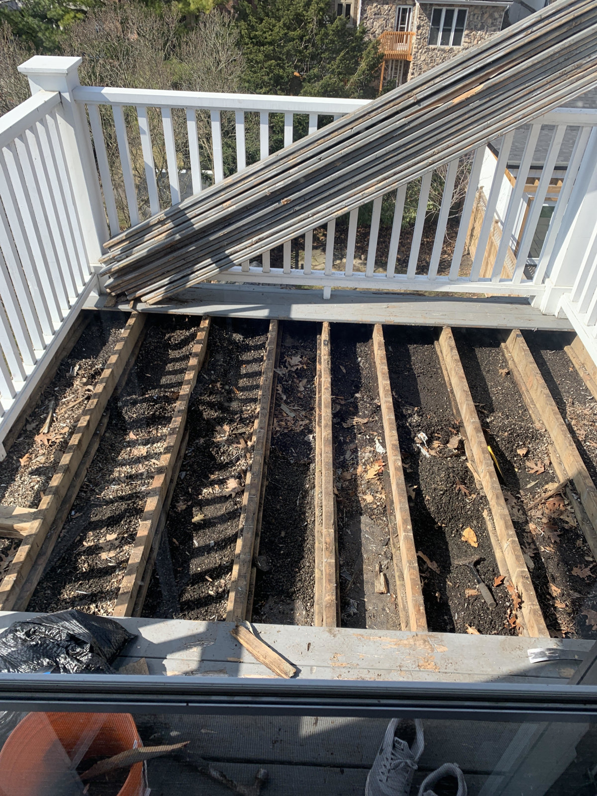 I've taken up the deck boards and started to clear of the pebbles. Some low spots for sure.