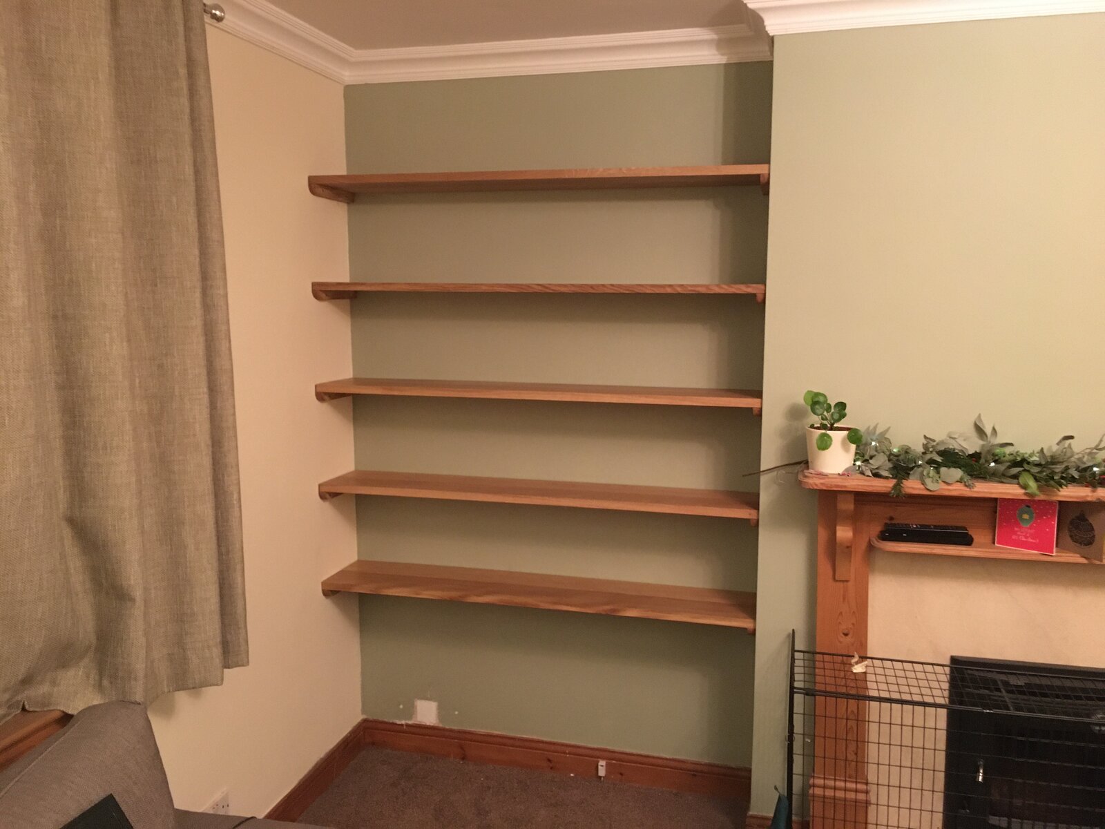 I'm about to put up a set of 5 heavy solid oak shelves. They weight about 7kg each with things like books to be sitting on them. I've decided to mount to the sides of the brick + plaster alcove they're going in rather than the back, which is a dot and dab wall.