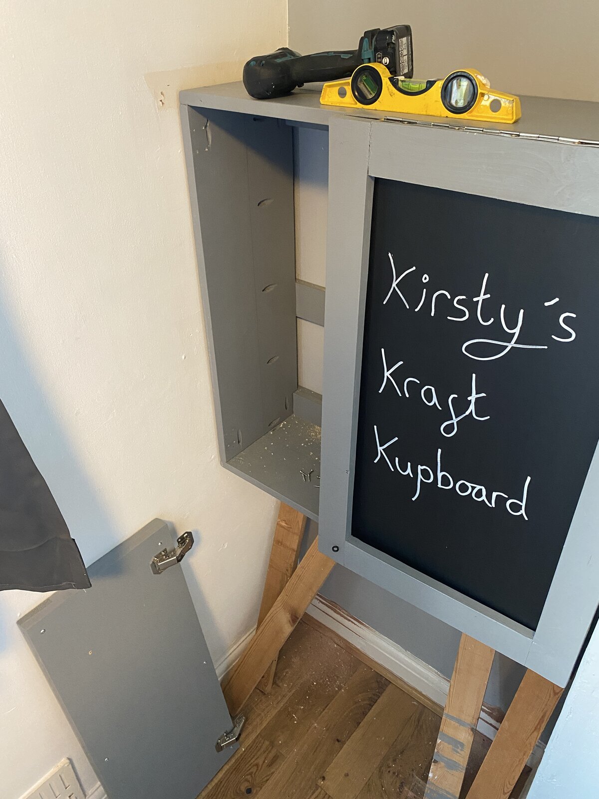 I’ve just started out in the world of DIY and have built my wife a sewing cabinet. The right hand door folds downwards to become a table. However the left hand door is an overlay that opens outward. The problem is I haven’t accounted for the thickness of the left hand door (36mm) and it will not open against the wall with the current flush hinges.