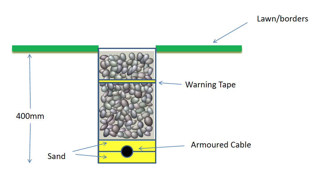 Hi, I want to run a cable under a lawn to a tree for fairy lights. The run is only about 10 feet from a wall.