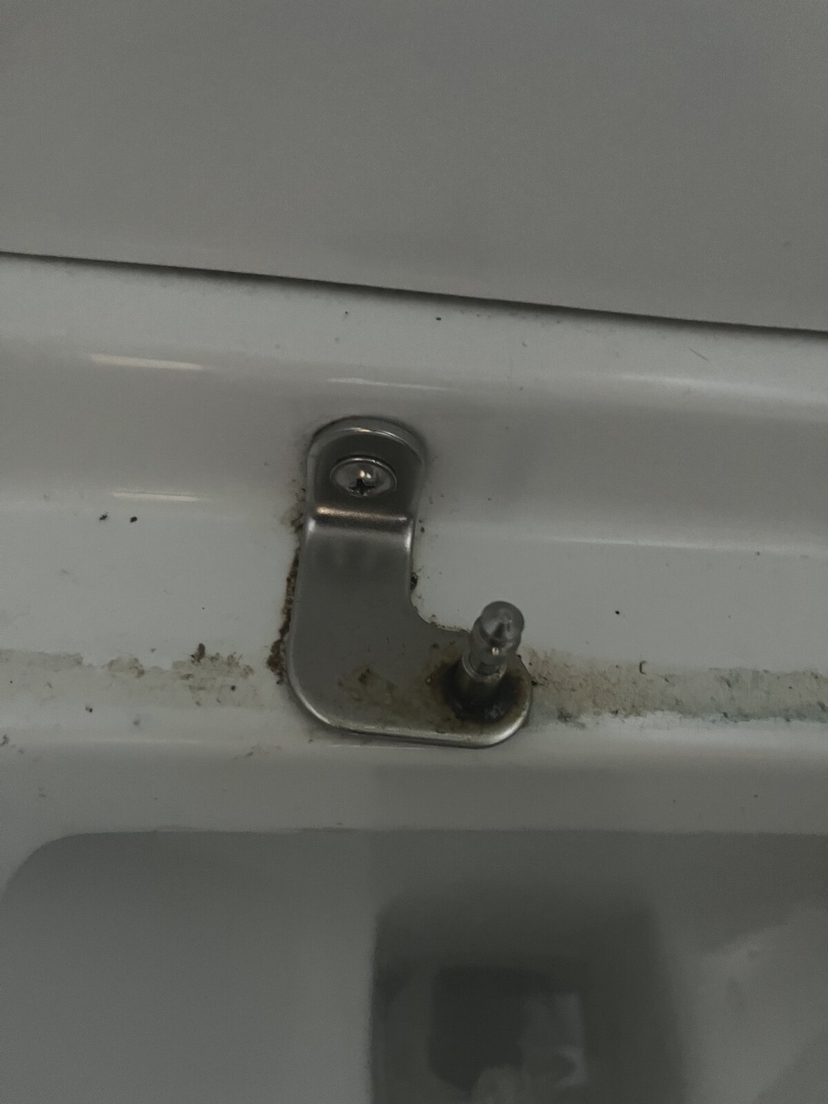 There’s then a metal hinge coming from the cistern with the standard two poking up points to clip the seat onto.
