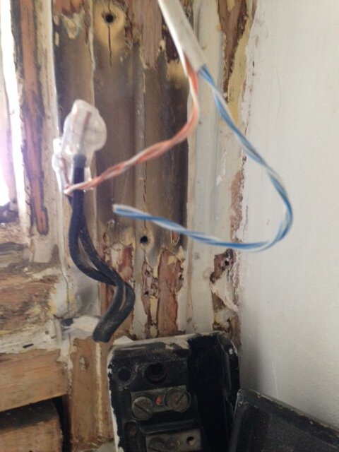 The black leads (pic 2) seem to be connected to an outside telephone pole (very old rusty leads). The blue/red leads seem to be connected to a phone socket inside house. Broadband is still working even though those leads are disconnected.
