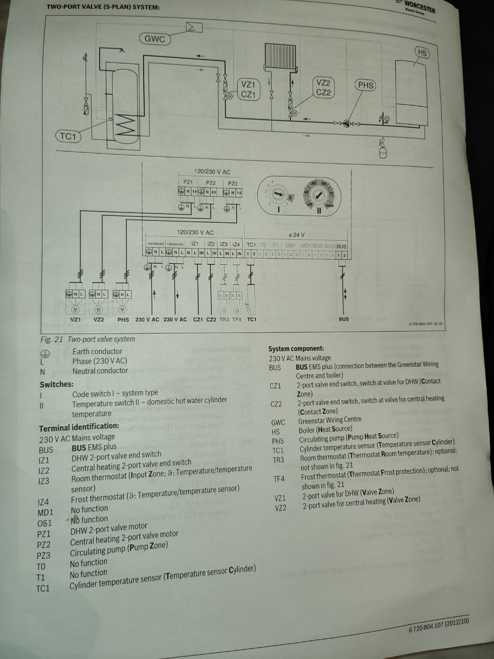 Worcester Bosch only allow their own ebus thermostats to be used, so can't use the OpenTherm option, so you really want a thermostat which only switches off when all rooms are satisfied, every time an on/off thermostat switches off and on again, the boiler starts again from scratch setting the output to match demand, so is not running as efficiently until it has set how much it needs to modulate, the whole idea is the room temperatures are set with the TRV, as each TRV closes more water is forced though those still open, and then the by-pass valve starts to open allowing hot water direct back to boiler, the boiler uses the return water temperature to set how much it needs to modulate (turn down) so it is able to gain the latent heat from the flue gases. It also means a smooth temperature, with little or no hysteresis.