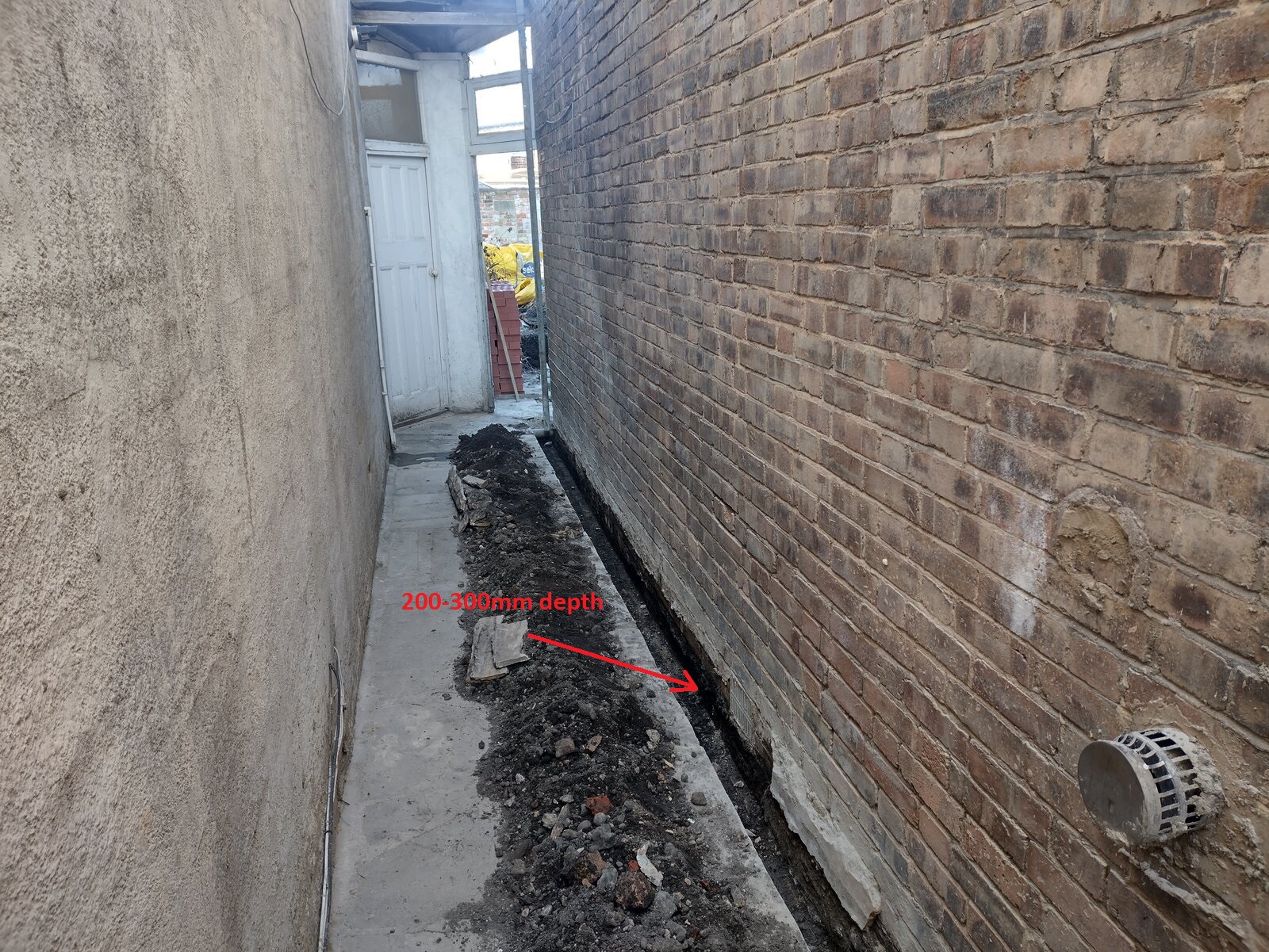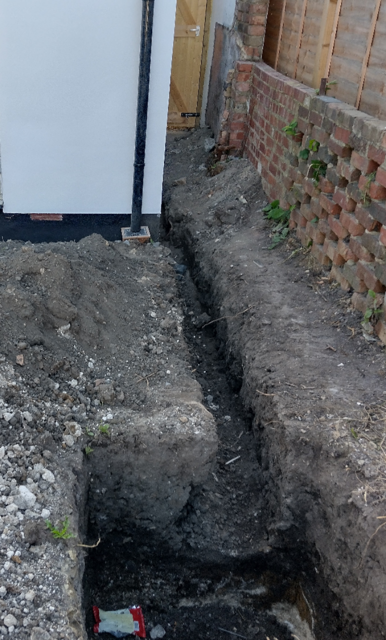 The chase is filled with a membrane and 20mm gravel