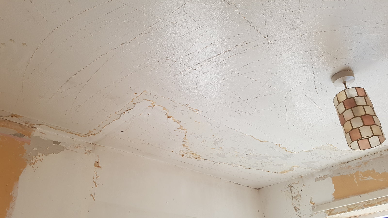 Due to the previous owner having fitted wardrobes, when I removed them, they left a thick line where the cornices had come away from the ceiling.