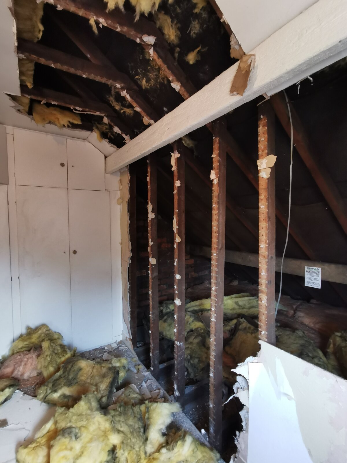 I was expecting to be able to just rip out the stud work, but it looks pretty original i.e. 1890s. The 3x2 inch rafters sit on upper and lower 7x2 inch purlins for each pitch, where the purlins sit in the brick walls, so I'm hoping they're not structural. Floor approx 8x4 metres.