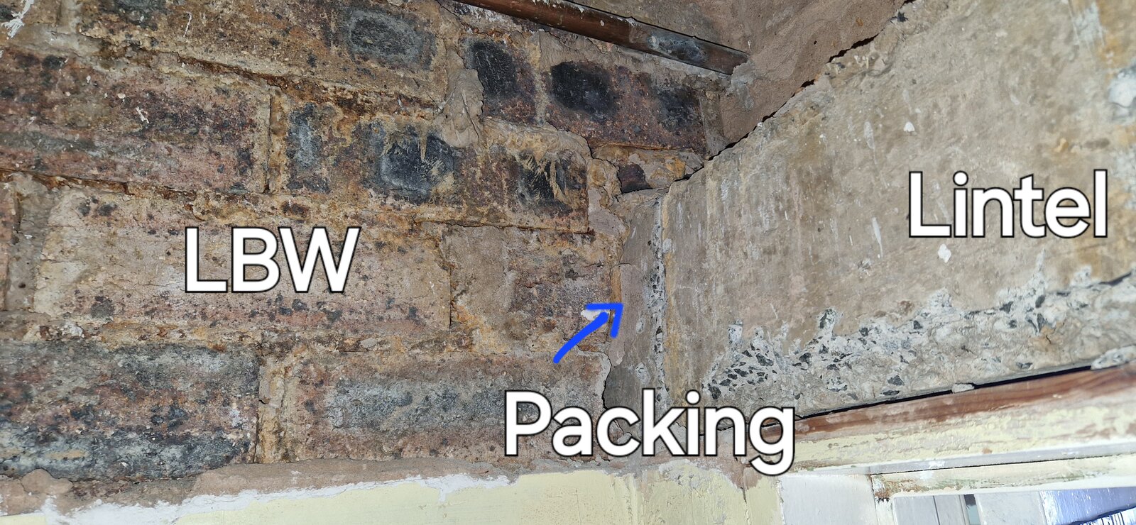 Although it has a concrete lintel that goes into a supporting wall at 90 degree angle. (Image attached).