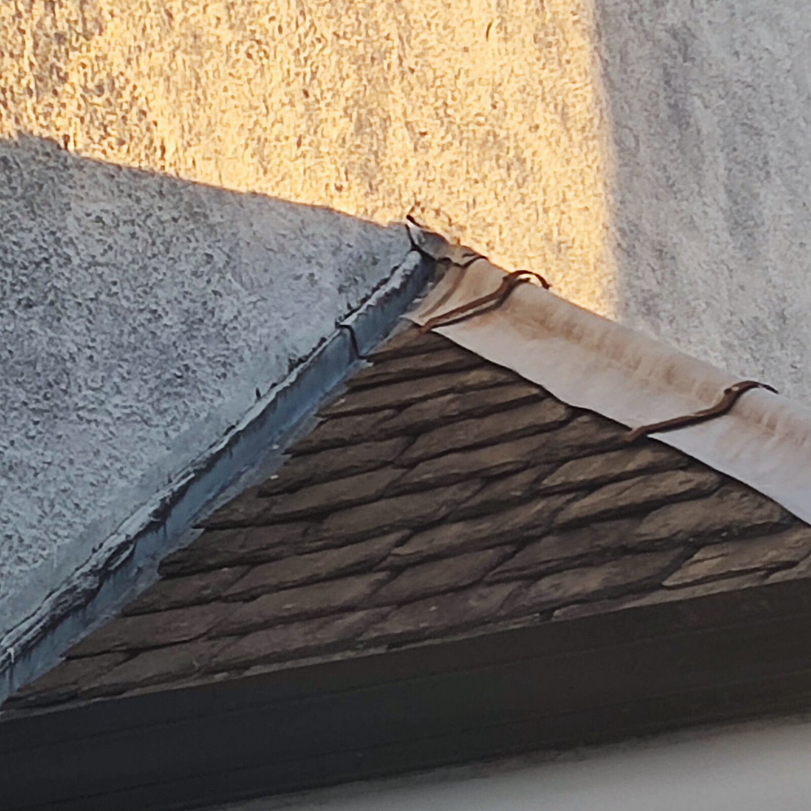 Please can someone take a look at this picture of lead flashing on my lean to roof my internal wall plaster is bubbling and wonder if the gap above the lead flashing should be sealed. Is it possible water is getting in at the gap above the flashing? And through to internal wall.