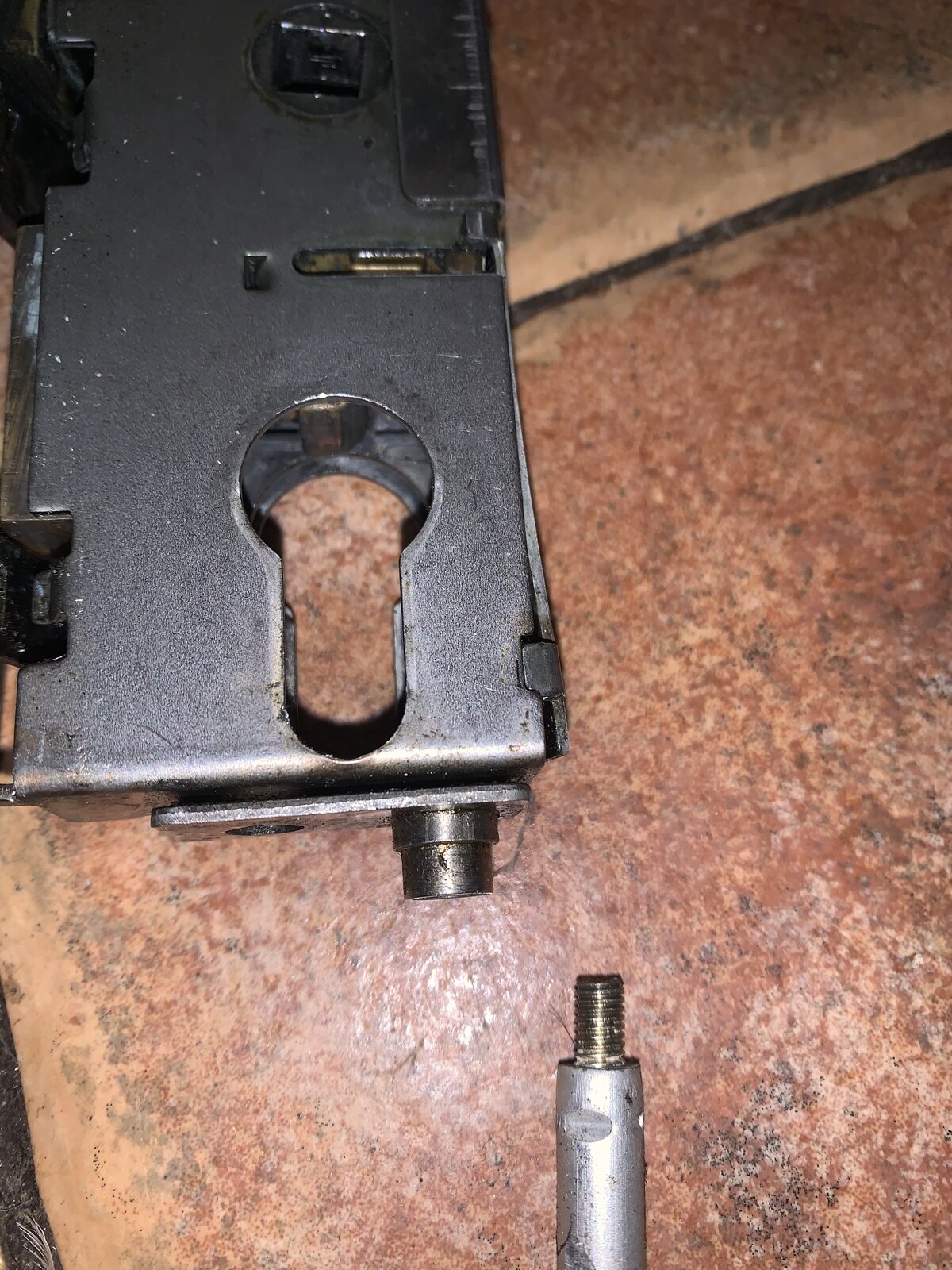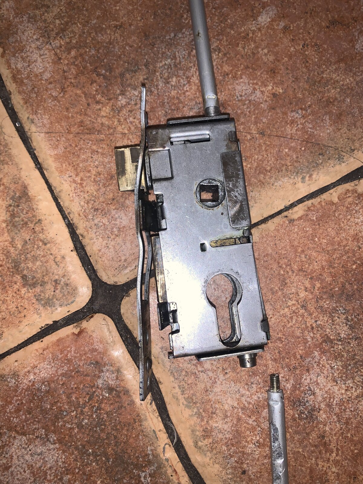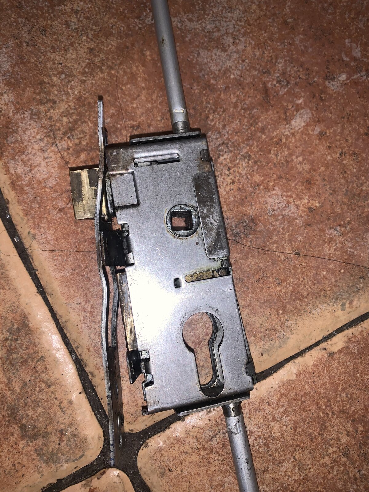 I have this door lock that recently passed away in my back door. The only inscription in it says 88. It has 2 long rods that goes along a hollow cavity of the door and latches the top and bottom frame of the door when locked. The rods can be screwed and unscrewed.