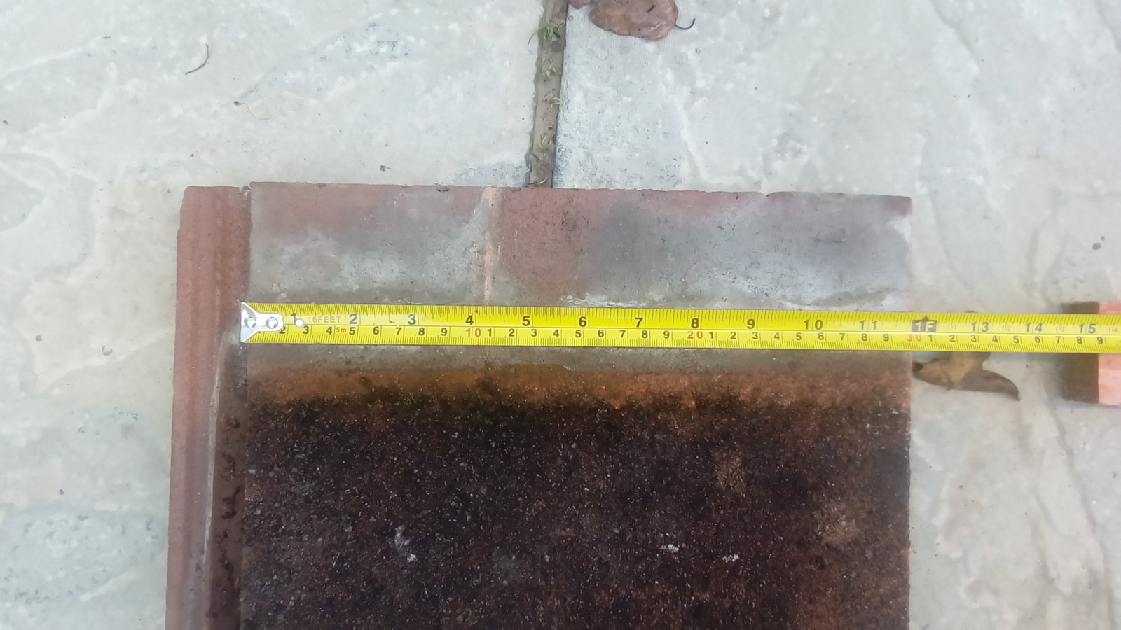 It's about 335 O/A width and about 418 long so very simulare to a Redland but CRUCIALLY the top face is 300 wide (where Redland & Marley are 290).
