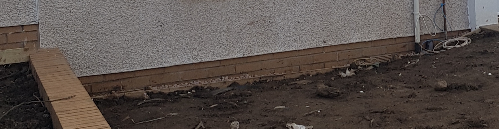 I am trying to think why the builders have made it so sloped here and wonder if it is because the bricks which are not rendered (I am assuming that is the damp proof course?) need to remain above the ground level? Is there any way this could be corrected or do those bricks need to remain unobstructed?
