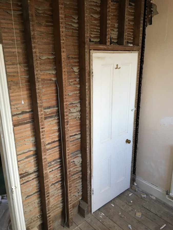 Currently one of the walls is back to studs as it was lath and plaster and I am going to use aquapanel on that wall. The other wall is currently plasterboard and skimmed and is in good condition. I Want to use aquapanel on the other wall as the shower is going there to be sure of water resistance and weight of tiles. I have started to remove the plasterboard wall but am I just creating more work than is required?