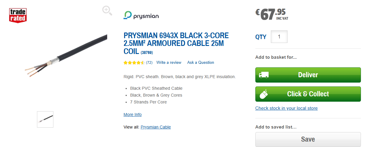 for some reason on the irish site they dont even list SWA cable with the Brown,Blue,G&Y cores - but surely 2.5mm is 2.5mm in whatever colours the insulation is shouldnt that be the case?