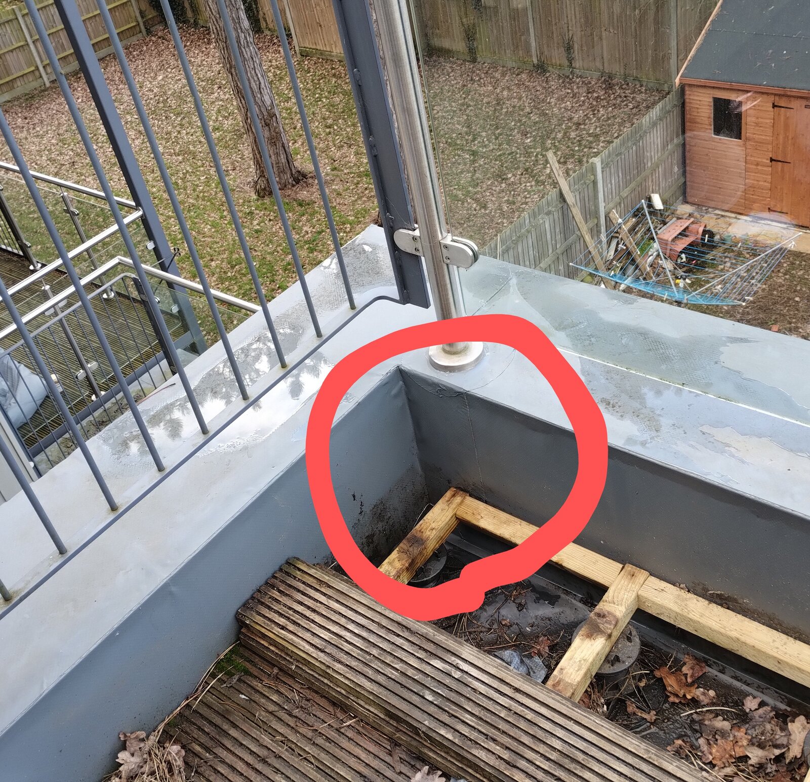 I've attached some photos, the sealant around the post and the couple of holes Ive tested with water. Nothing shows up. .any clues?