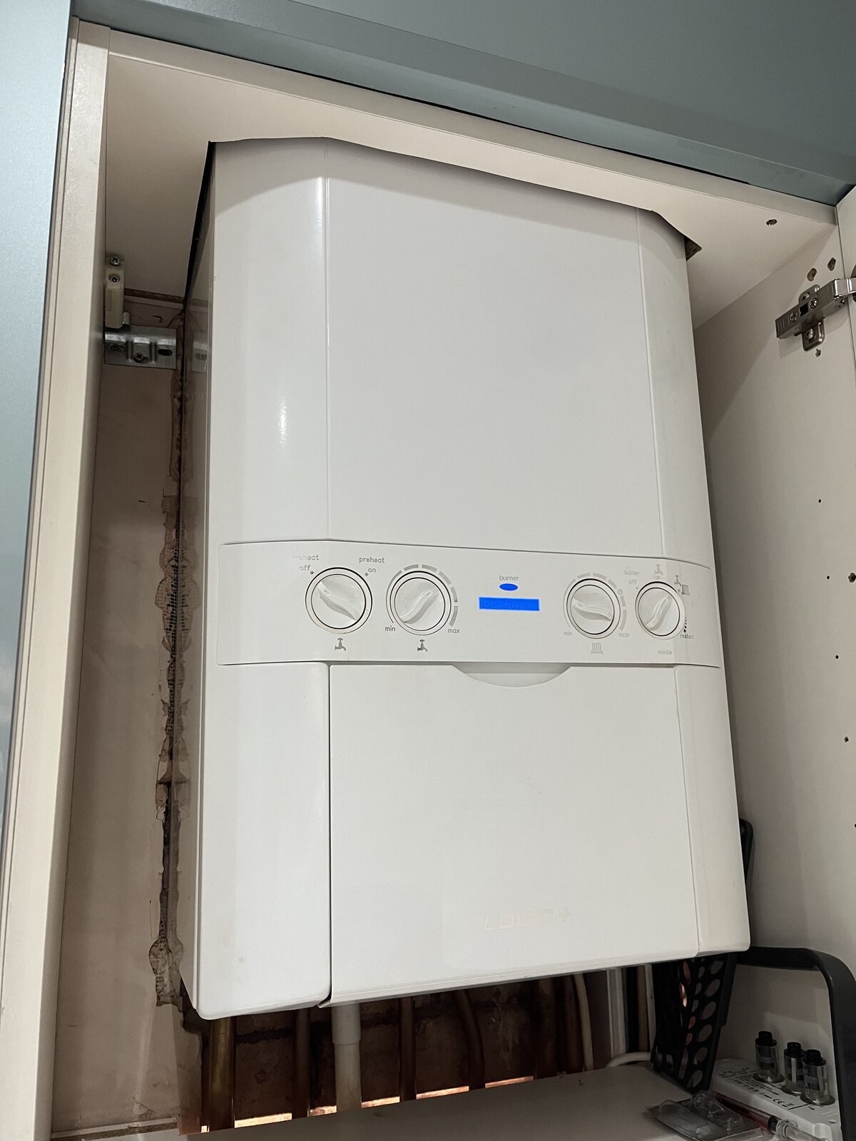 I know! Crazy! Another 20mm and it would have been ok I think. There appears to be some kind of box down the back between the wall and units underneath the boiler. Hoping it’s the receiver!