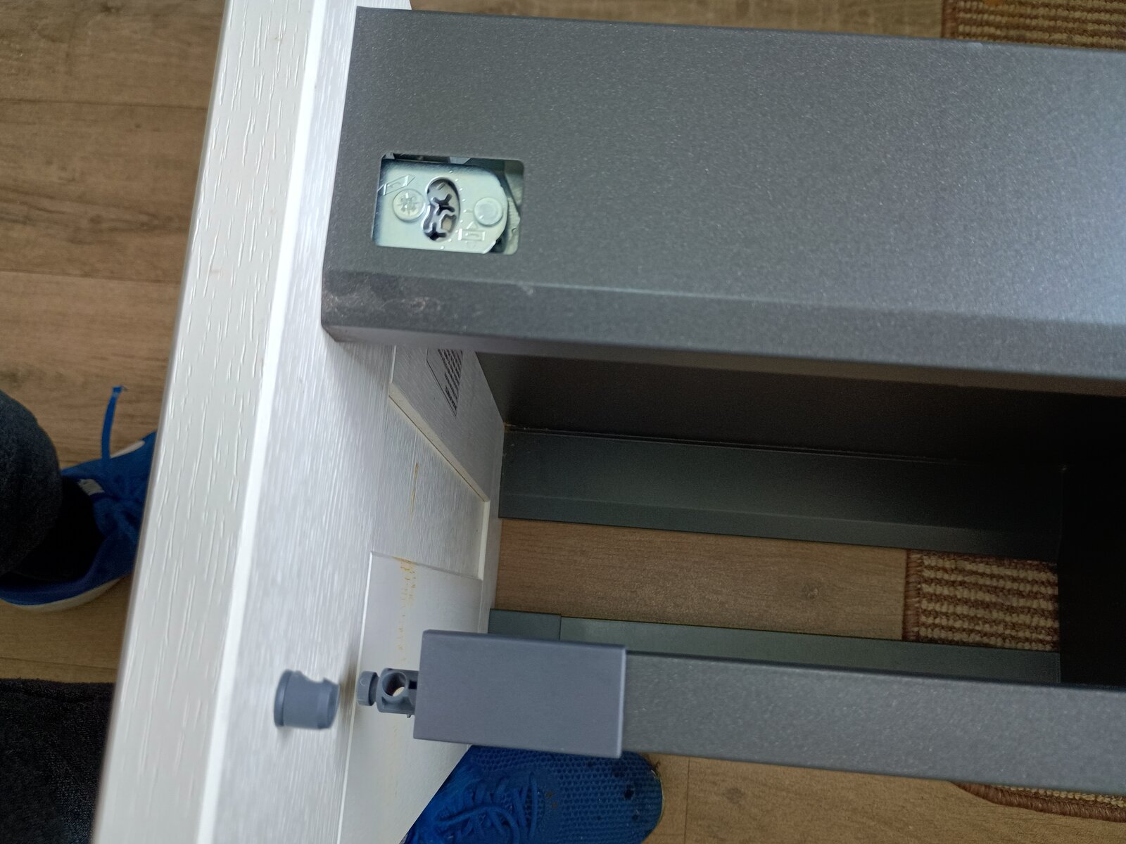 I don't recall seeing that particular mechanism, but as @Wayners seems to be suggesting, often inserting a screw driver into the crosshead in the recess releases the mechanism from the fitting on the draw front.