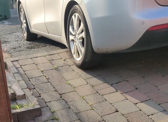 If the car is level the block driveway is falling. and the high front may have a use......