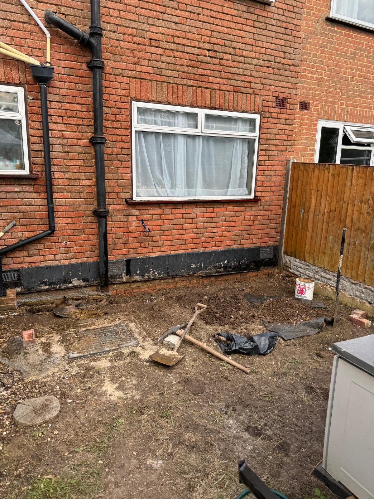 2) Damp course, my apologies. I guess it prevent water from going directly underneath the flat if i build the concrete and aim it away from the flat. That's how the flat used to look like.