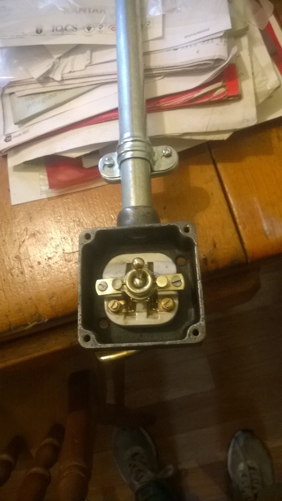 I am replacing the open wire and plastic light fitting with a conduit and an old metal light switch or repro switch. The wiring has an earth but one of the switches has only two entry points for wires The other has three so I presume one for an earth.