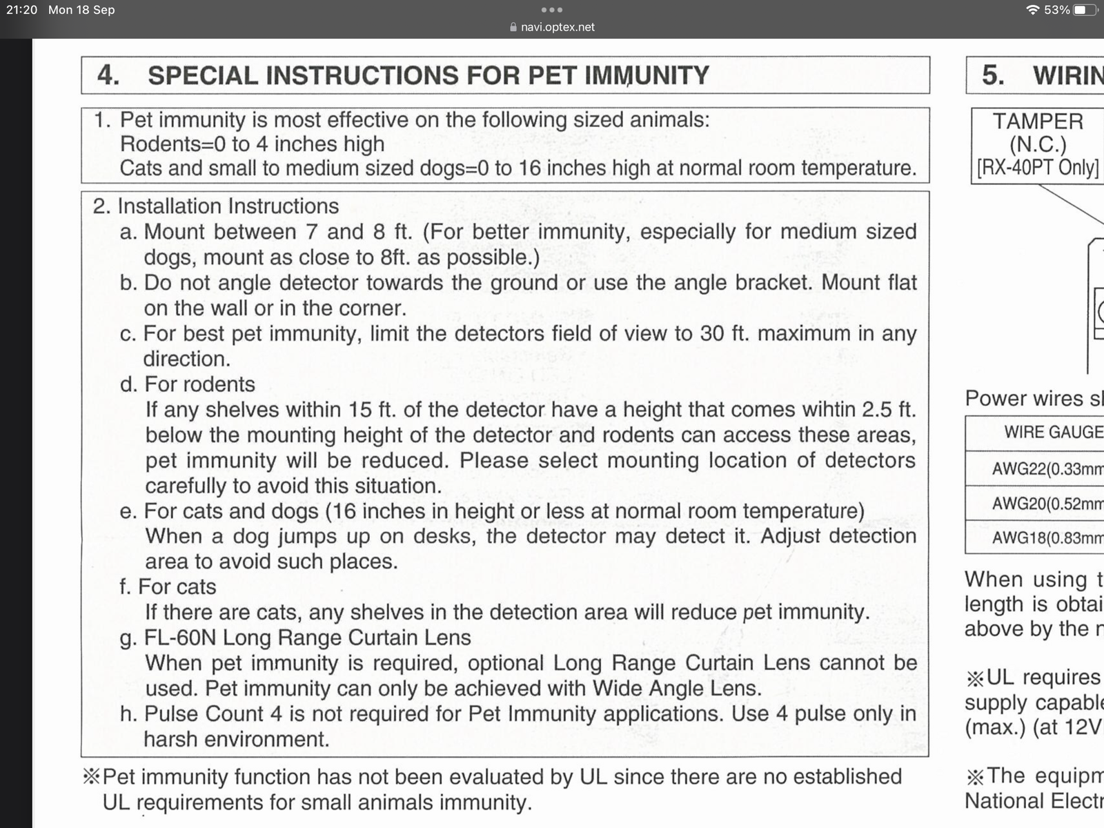 I've recently taken on two (very active!) kittens and, with a view to this, replaced a couple of aging Honeywell PIRs in the kitchen where they live with a pair of Pyronix KX10DP, described as "Pet Tolerant PIR".