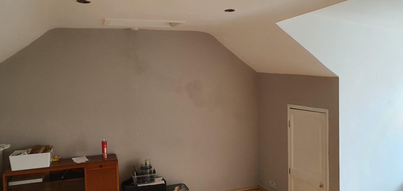 The house is med terrace. The damp itself roughly follows the angle and height of next door's roof - their house is stepped down from ours.