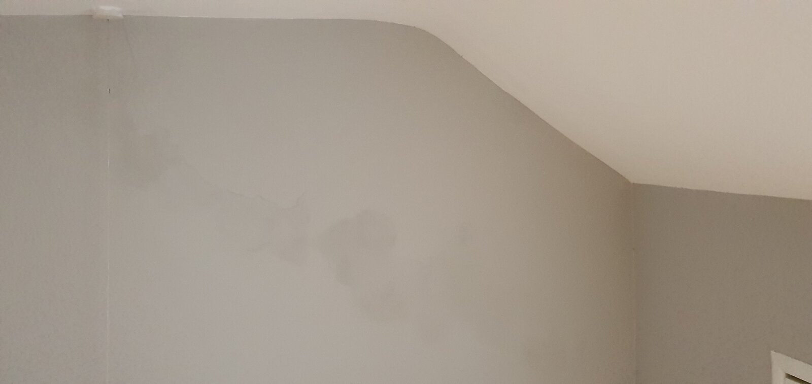 I've attached a few pictures of a damp line that has appeared in out loft room. It bled through in the course of heavy wind and rain a few weeks ago, but there is ample evidence of the wall having had issues with damp before.