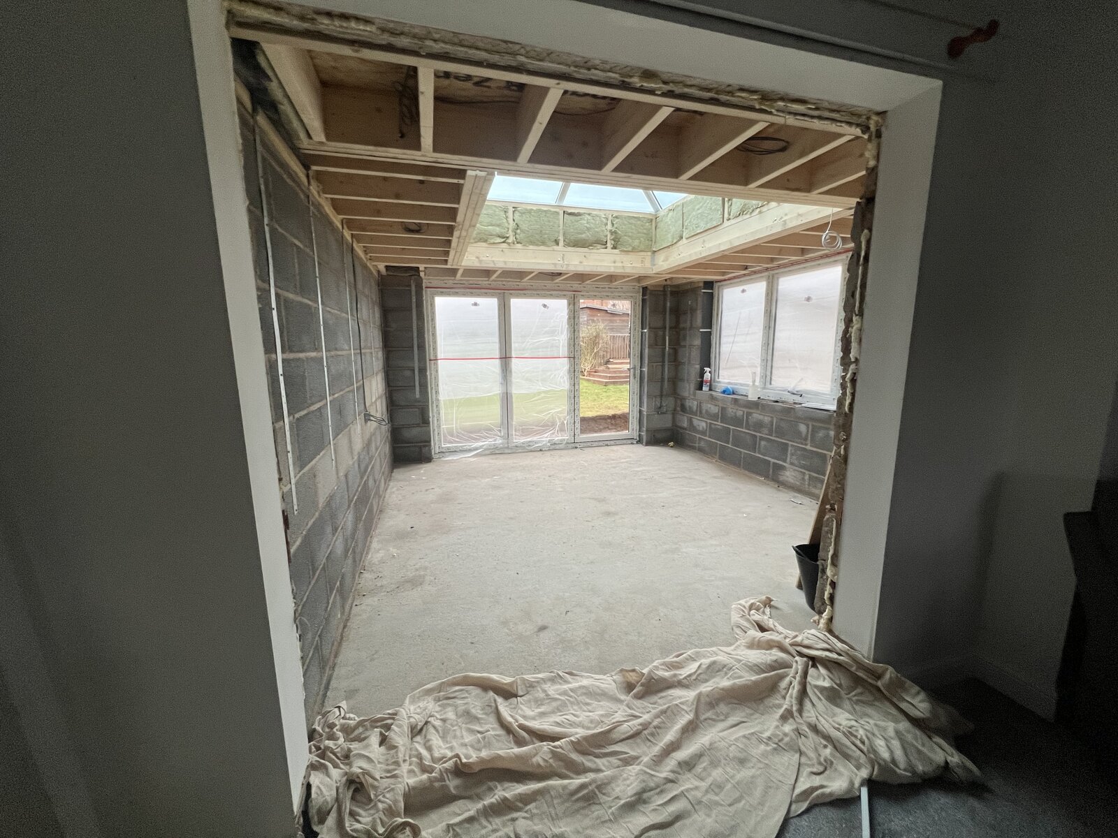 It’s a single storey extension with a flat roof. What was the external wall has now become an internal wall. I’ve attached a photo for reference.