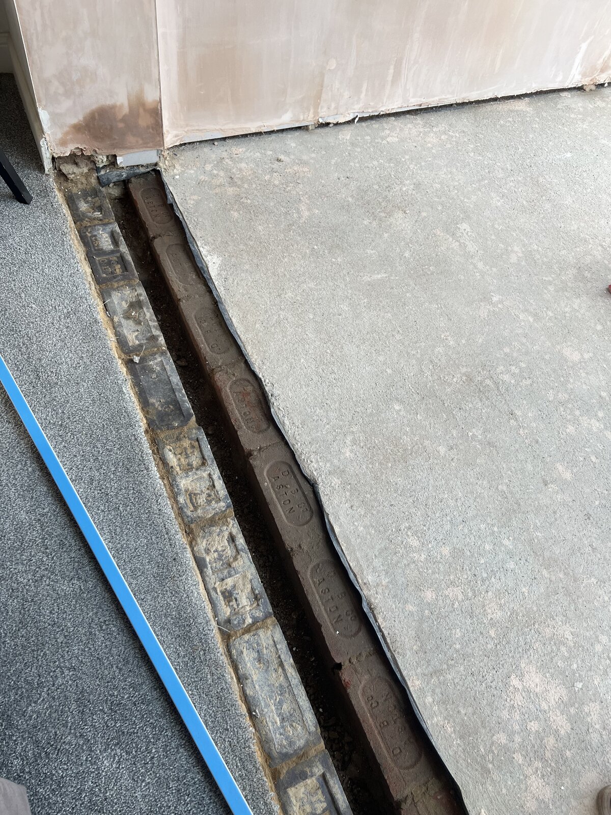 The question is what should I do about filling the cavity in? Should I fill it in? The brickwork sits about 5mm below the new floor and 15mm below the existing floor. There will be a laminate flooring going on top of the new floor. I thought about lining the cavity with dpm and filling with concrete, cap it off with a cavity closer, then seal it and use self levelling compound to the height of the new floor. Would this work?