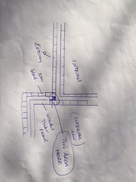 A/ remove a 50mm run of external existing cavity wall to blend with new cavity.