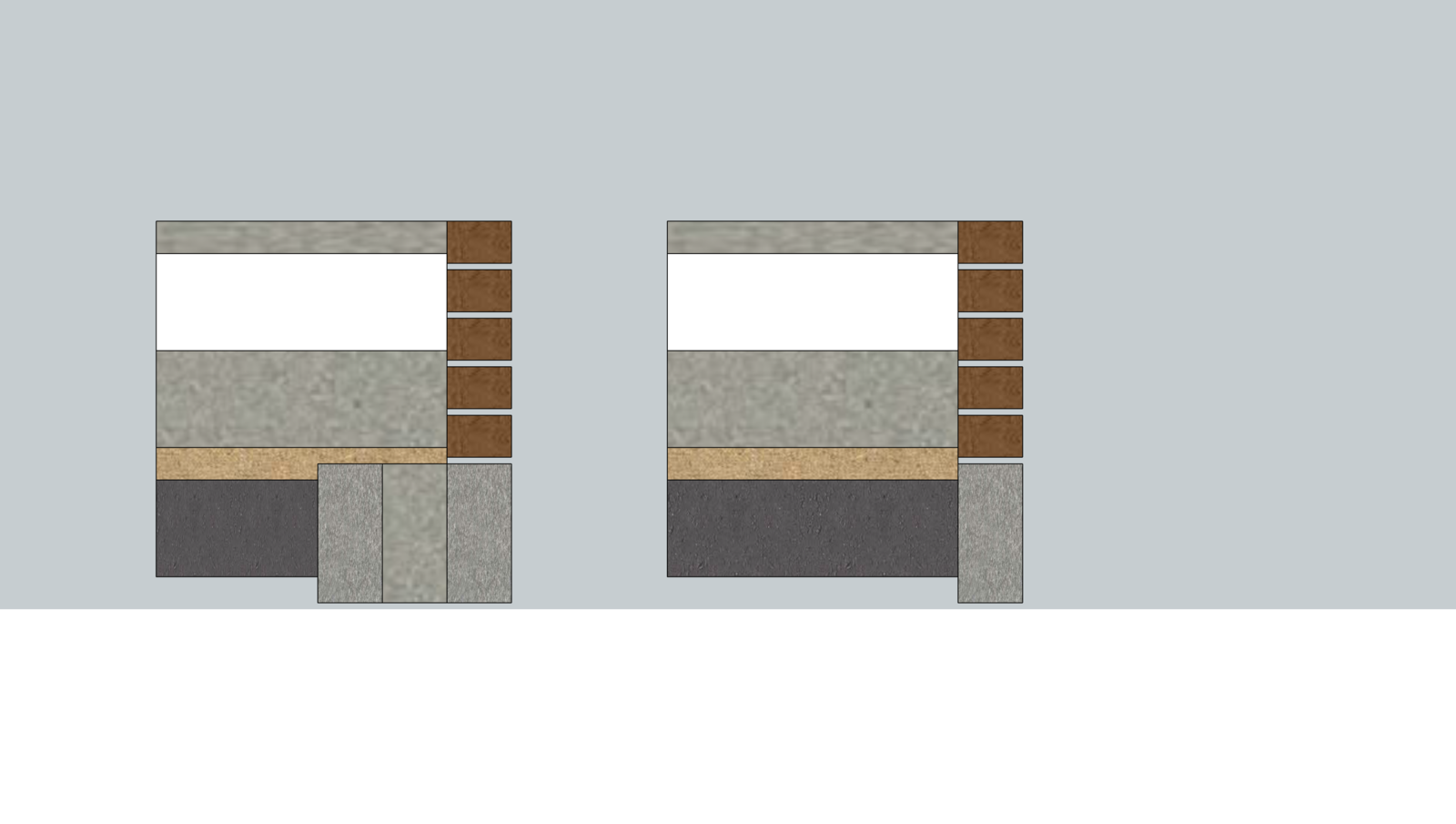 I'm building an extension (DIY) and I'm a bit unsure about the inner skin around the door opening. I've gone single skin for the door openings but I've realised that a lot of people seem to have it coming up to around 1 block (225) below FFL. I've attached a picture to show the two options. That's my build up in the picture (150 hardcore, 50 sand, 150 concrete, 150 PIR, 50 screed).