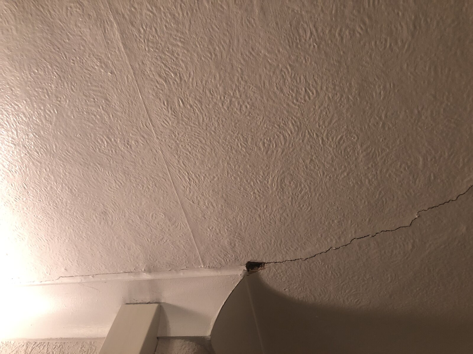 I poked up through the crack, where the hole is and it feels like laths, so wondered what I’d have to do to restore the ceiling and remove the crappy shiny paint?