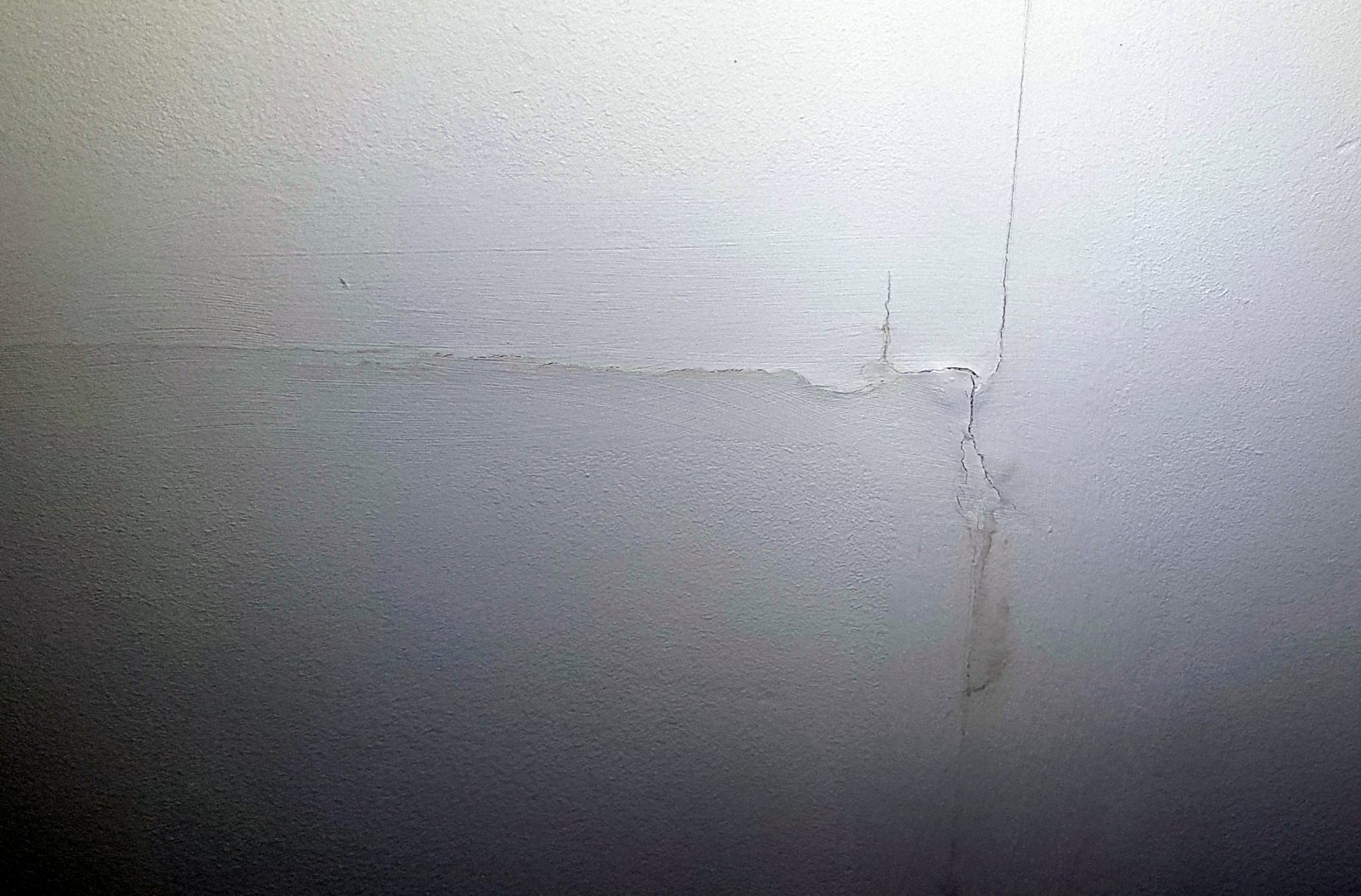 Previous owners had a leak from the water tank above the living room. They repaired the ceiling, but poorly.