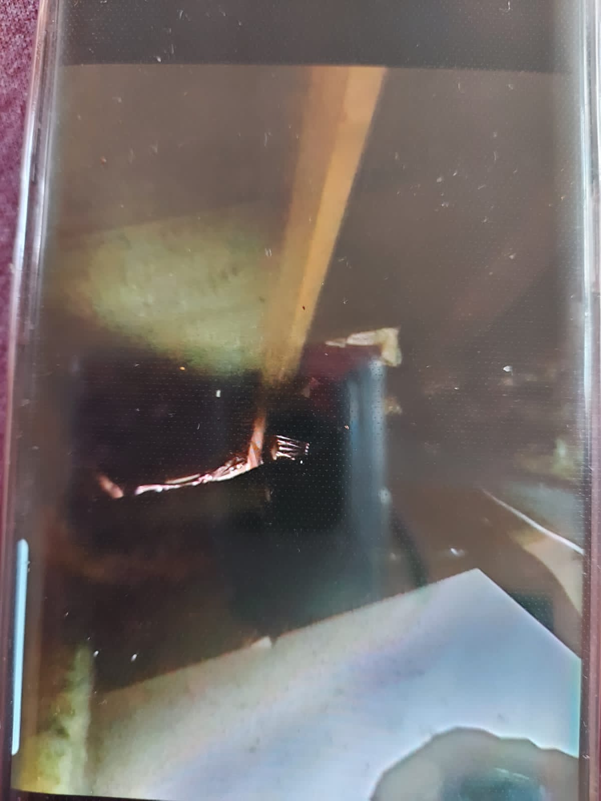 I am really indebted to my neighbour for spending hours trying to fix the leak. He, among others, put towels to fill up the gaps in the roof where the pipe goes through, see attached images. This fixed the problem for few days. When it rained again, the ceiling started leaking again.