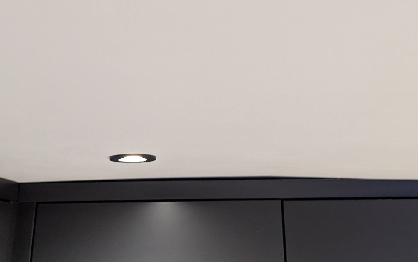 Our kitchen ceiling rises slightly above the cabinets and bugs the hell out of me. I'm guessing the joists/boarding were slightly our when it was skimmed. In certain light you can see the line of the dip running about half a metre from the cabinet.