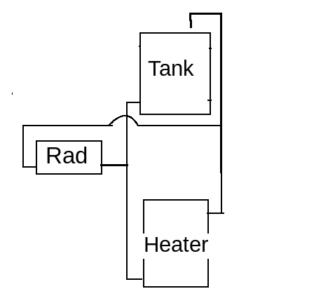 Do you mean like this?Surely you connect both connections to the rad to both connections to the heater, teeing off from one of them to go to the header tank to act as the fill/expansion pipe?