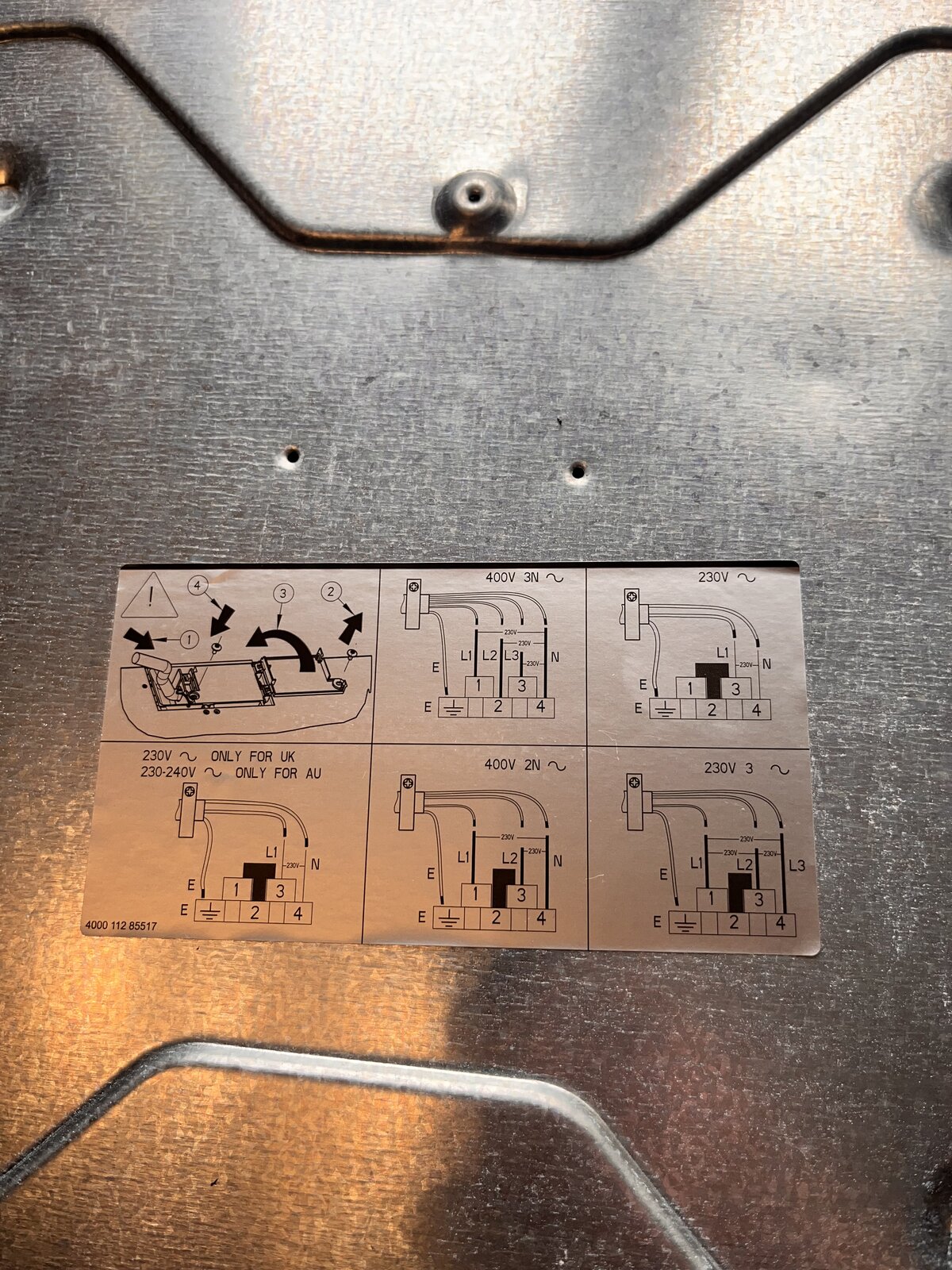 Img 4126 shows the terminals for the new hob to which there are 5. I understand the hob can be wired in a number of ways 230v 400v 2 and 3 phase but I suppose its thrown me as the original wiring doesn’t align with the standard 230v wiring suggested using 3 core cable.