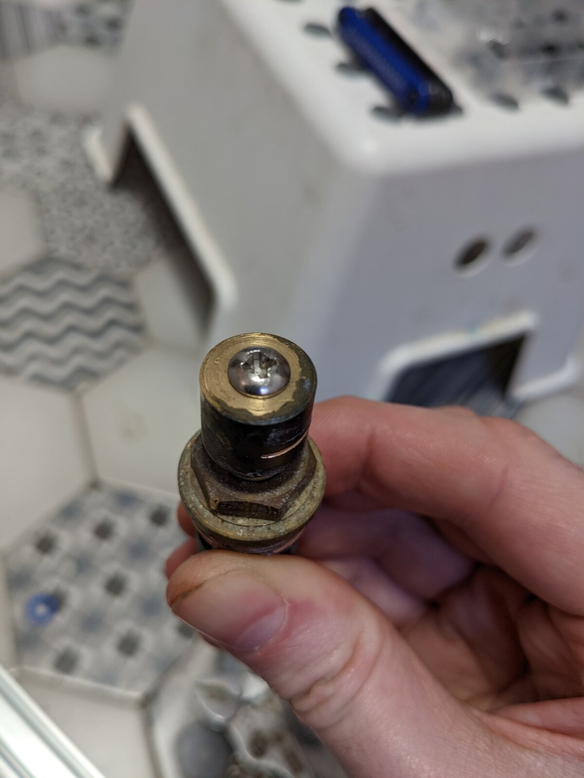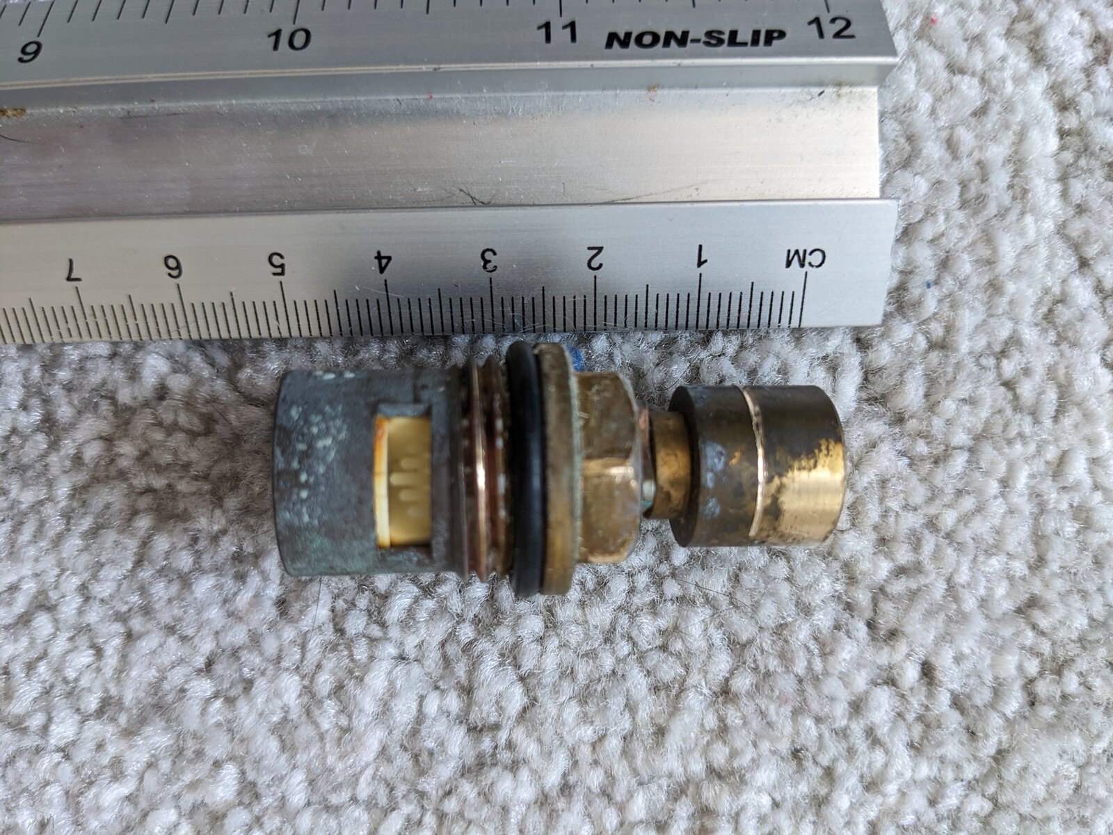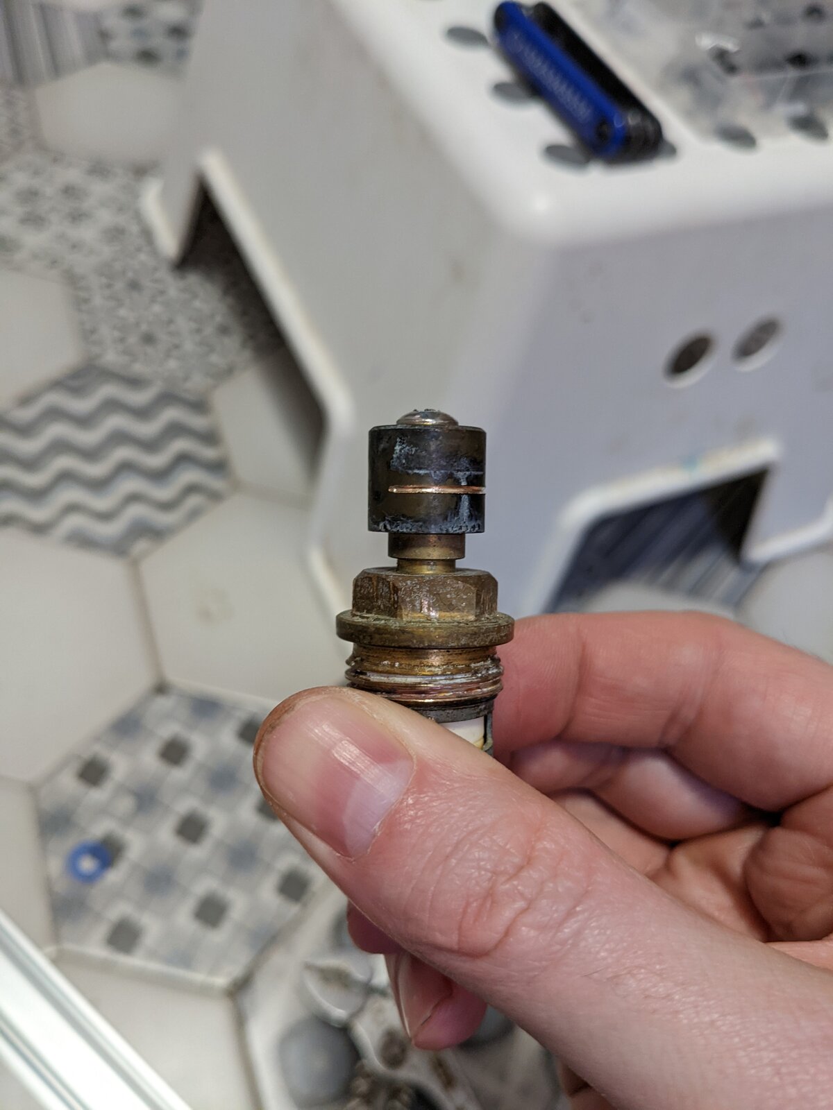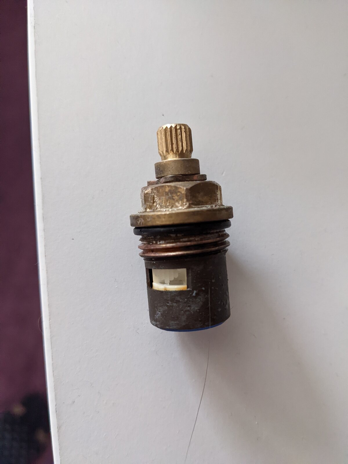 Can anyone help me identify where I can get a replacement ceramic valve for a bath tap? Everywhere I've looked they have teeth, however this one has a large cylinder which the tap head attaches to via a hex screw on the side.