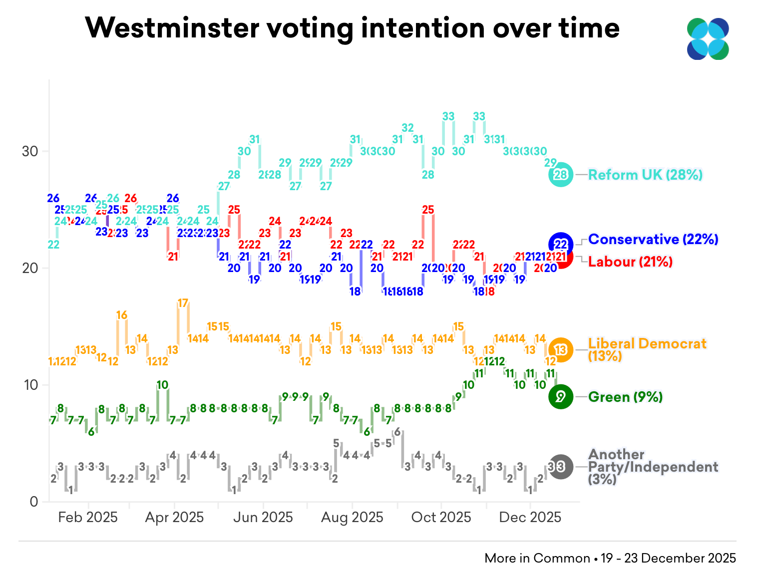 I've not been following the polls. But a quick bit of research shows the consensus is that Reform have been steadily losing support to the Tories since September: