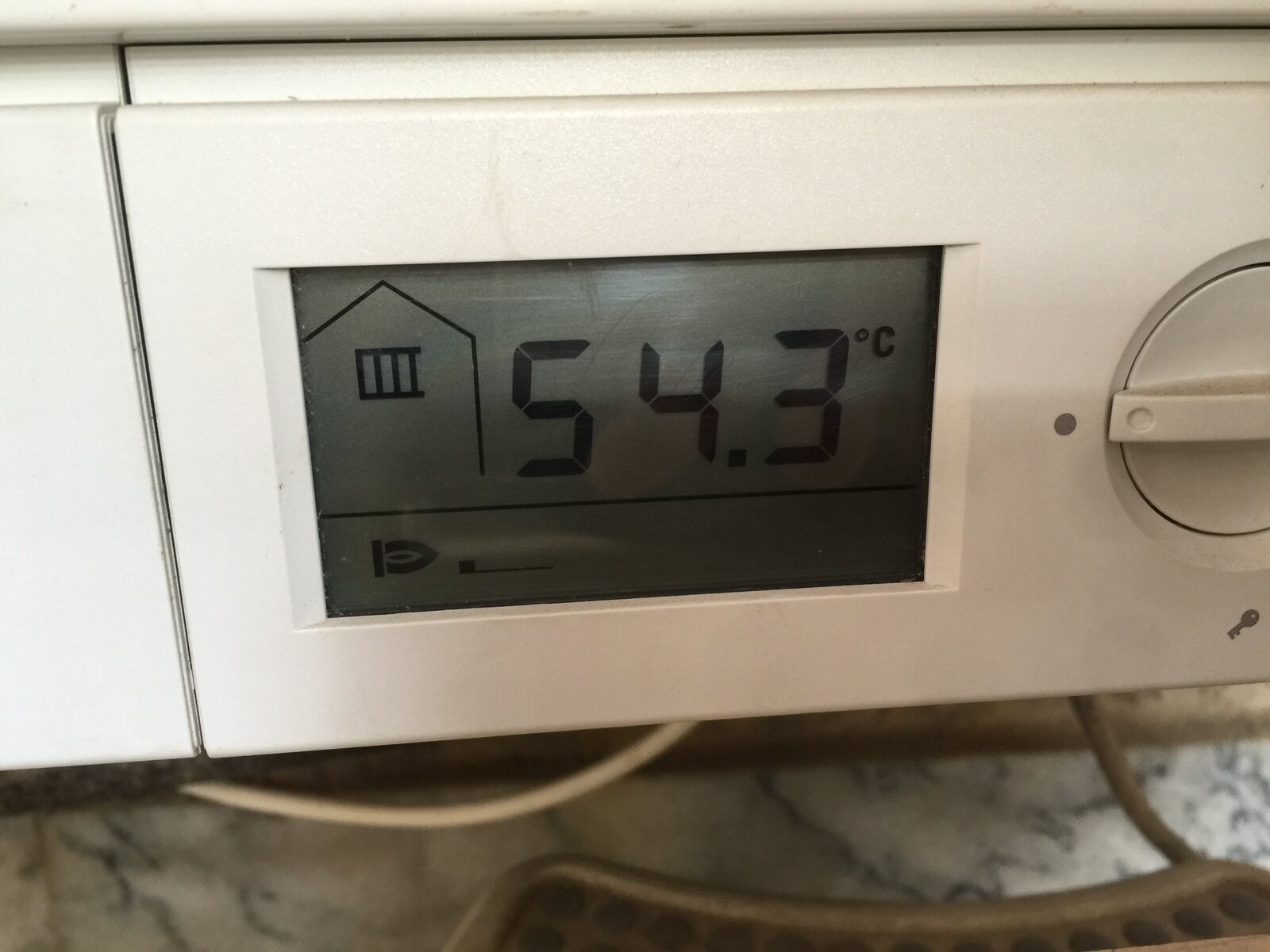 Flow temperature dial is set just below the delivered condition (pic 3). It used to get to 49.5-50DegC at this setting and would turn off at that temperature. Outside temperature has dropped couple of degrees due to a cold wave during the last couple of days (where I live).