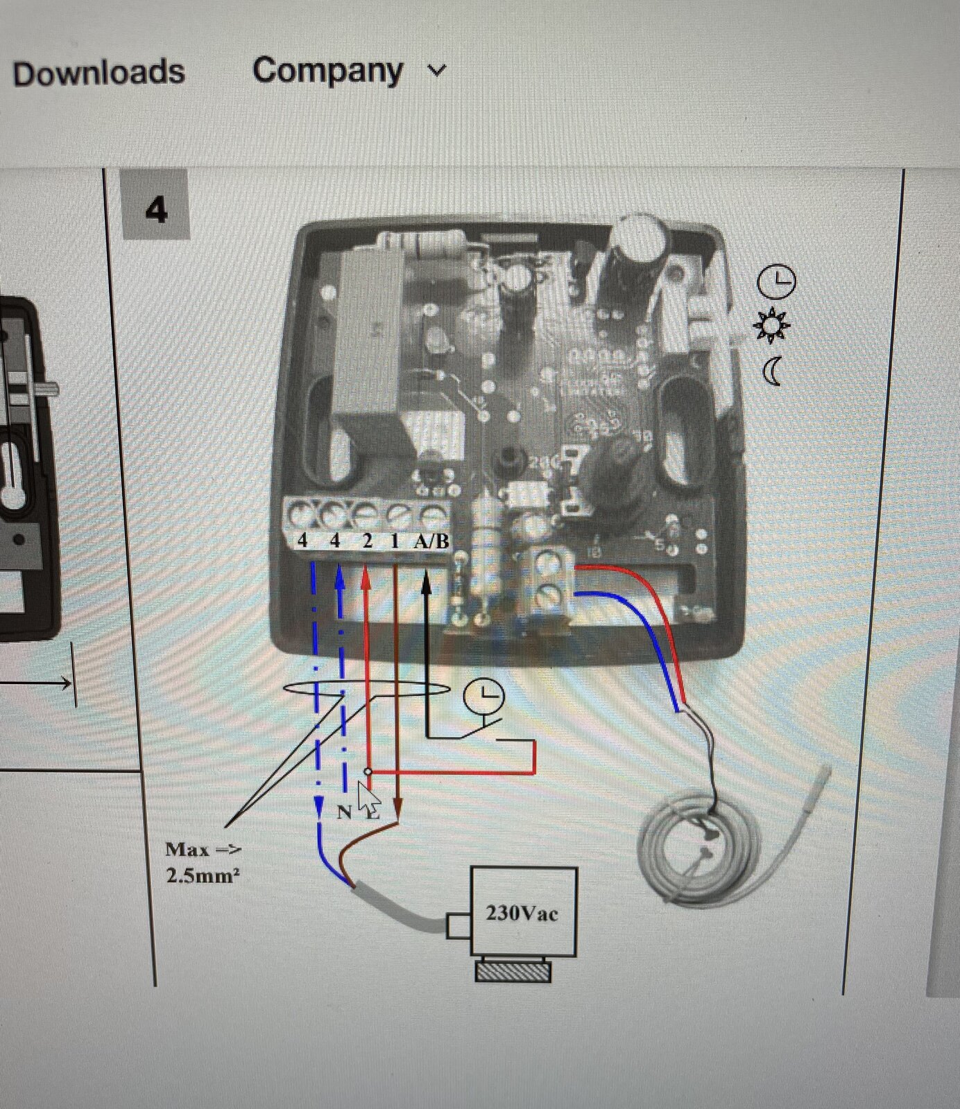 As per the below diagram, terminal 4 is shown connected to N. So I'm a bit surprised to find that in your photo terminal 4 looks to have a brown (live?) wire in it